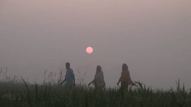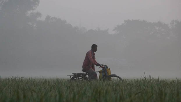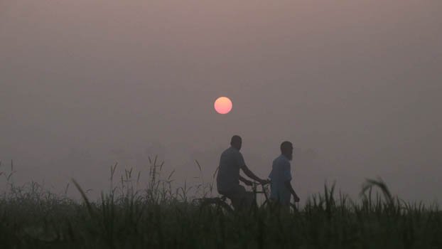 With winter approaching temperature falls in the country's northern region.Workers experience a chilly weather while going to work in the morning. The photo was taken from Shajahanpur upazila of Bogura. Photo: BP