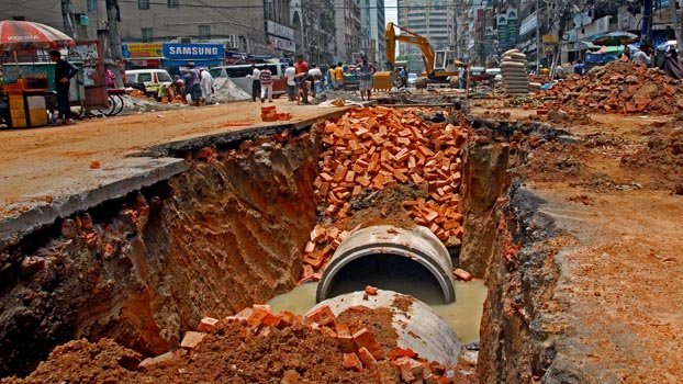 A road from old Balaka Bhaban to Jiban Bima Bhaban in Motijheel is being excavated for installing sewerage pipes. Photo: Zahiduddin Saimon