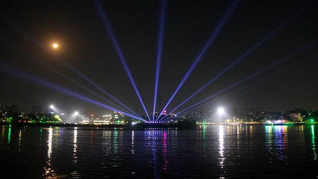 The Hatirjheel area wore a fascinating look on Monday with eye-catching illumination and lighting marking the attainment of 100 percent electricity coverage in the country. Photo: Nazmul Hasan