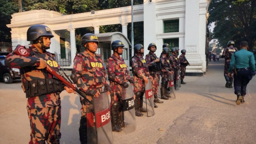 Security has been beefed up in International Crimes Tribunal (ICT) area in the capital city of Dhaka on Sunday morning as 13 army officers, accused in two crimes against humanity cases involving enforced disappearances under the Hasina‑led regime, have been brought there.