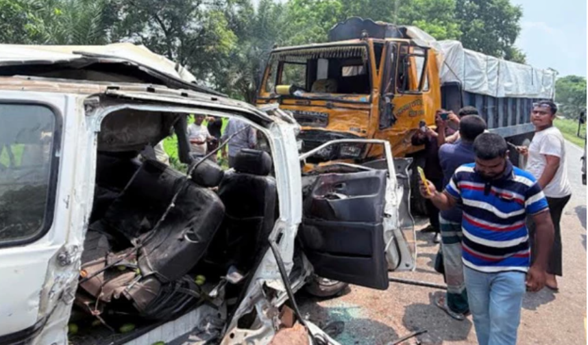 The accident occurred around 10:30am when the Dhaka-bound microbus from Natore crashed into the truck in Sirampur Araimari Bridge area, leaving five dead on the spot and three others, including the microbus driver, injured, said Ismail Hossain, officer-in-charge of Bonpara Highway Police Station.