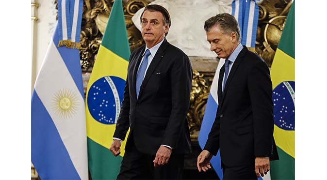 The conservative presidents of Brazil and Argentina reiterated their rejection of Venezuela's socialist government Thursday as the far-right Brazilian politician Jair Bolsonaro made a state visit to Buenos Aires. Venezuela is suffering an economic and governance crisis that has led more than 3 million people to flee the country in recent years, and dozens of nations say Nicolás Maduro won a new presidential term in an illegitimate election last year, report agencies. Argentina and Brazil "will do everything possible to restore democracy in Venezuela," Argentine President Mauricio Macri said while standing next to Bolsonaro Macri will seek re-election October and Bolsonaro has expressed support for his bid. Bolsonaro has also been critical of leftist former President Cristina Fernández, saying that if she returned to power running as vice president on the ticket with her former chief of staff, Argentina would suffer the same problems as Venezuela. "All of South America is concerned that there will be no other Venezuelas in the region," Brazil's president said. The two presidents also discussed potential energy deals and the fight against corruption and organized crime, which are entrenched in both nations. Macri said both countries would seek to improve South America's Mercosur trade bloc, which he said is "very close" to finishing a free trade deal with the European Union. Brazil is Argentina's top trade partner. During the visit, Argentina also agreed to contribute security measures for the Copa America soccer tournament being held June 14-July 7 in Brazil. Both Macri and Bolsonaro face domestic challenges. Argentines frustrated by a recession, the sharp depreciation of the peso and high inflation have been out in the streets protesting Macri's policies. Bolsonaro is struggling to advance his agenda and is also coping with a falling currency. He has faced protests against plans for cuts in education spending and has seen his approval rating slide since a big election win last year. The Brazilian leader has further angered many people with comments seen as disparaging to women, blacks and homosexuals. A few dozen protesters turned out for an anti-Bolsonaro demonstration on historic Plaza de Mayo in front of Argentina's presidential place. One sign proclaimed: "Argentina rejects Bolsonaro. Your hate is not welcome here."