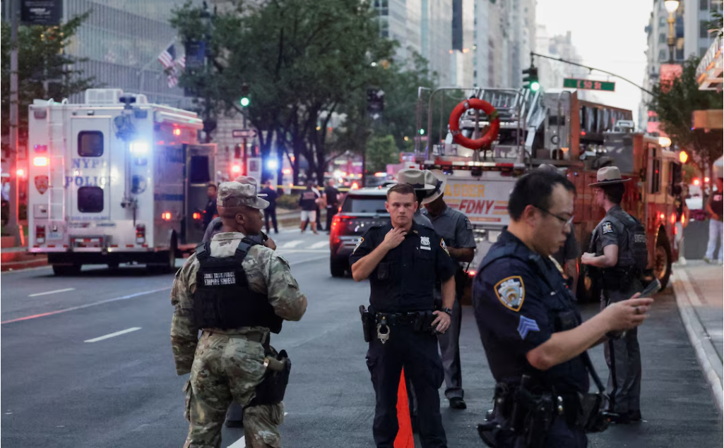 Reuters, New York: New York City homicide detectives sought clues on Tuesday to what possessed a Las Vegas man to drive cross-country and storm into a midtown Manhattan office tower to open fire with a military rifle, killing four people, including a policeman.