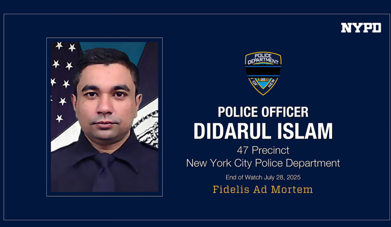Among the four victims slain was Didarul Islam, 36, a New York Police Department officer who immigrated to the U.S. from Bangladesh. Mayor Eric Adams described the officer, who had been on the force for about three and a half years, as a "true blue" hero.