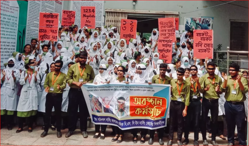 UNB, Barishal: Academic activities at Barishal Nursing College remained halted for the fourth consecutive day on Wednesday as students staged demonstrations for the dismissal of three teachers for their alleged involvement in attacking students.
