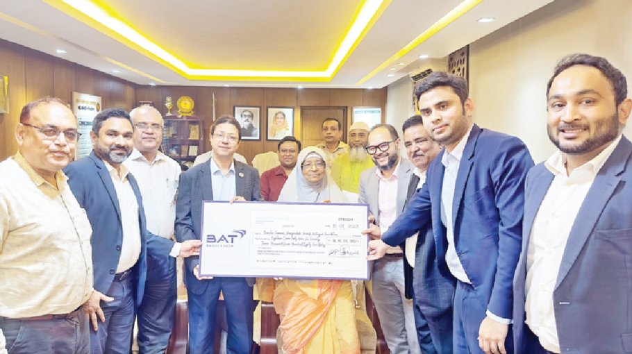 A five-member BAT Bangladesh delegation consisting of Head of Talent, Culture and Inclusion Saad Jashim; Head of Legal and External Affairs Sudesh Peter; Senior Manager, External Relations, Arafat Jaigirdar; Consultant Akhtar Anwar Khan and Business Communications Manager Md Fuad Bin Sajjad handed over the cheque to State Minister for Labour and Employment Begum Monnujan Sufian at the Bangladesh Secretariat on Wednesday.