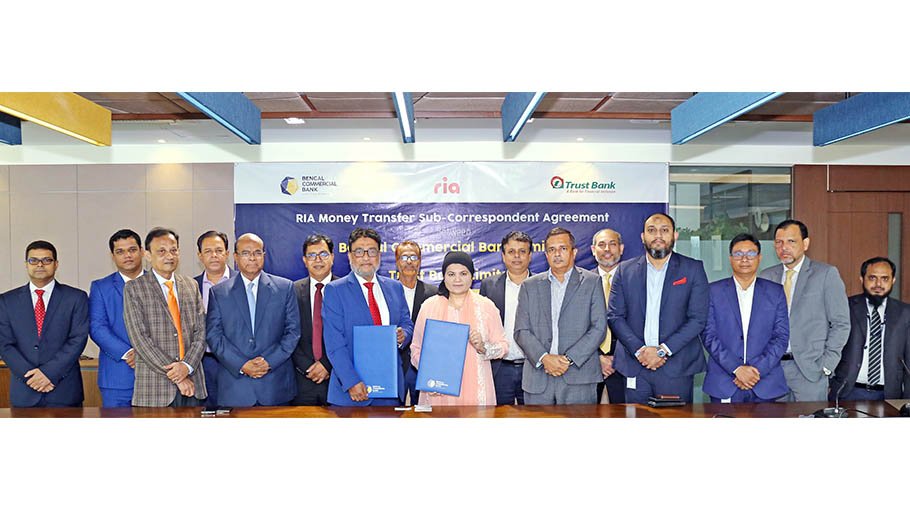An official ceremony was arranged to mark the “RIA Money Transfer Sub-Correspondent Agreement” and inauguration of the remittance service on Thursday at Bengal Commercial Bank's head office. Tarik Morshed, Managing Director & CEO of Bengal Commercial Bank Limited and HumairaAzam, Managing Director& CEOof Trust Bank Limited were present at the ceremony.