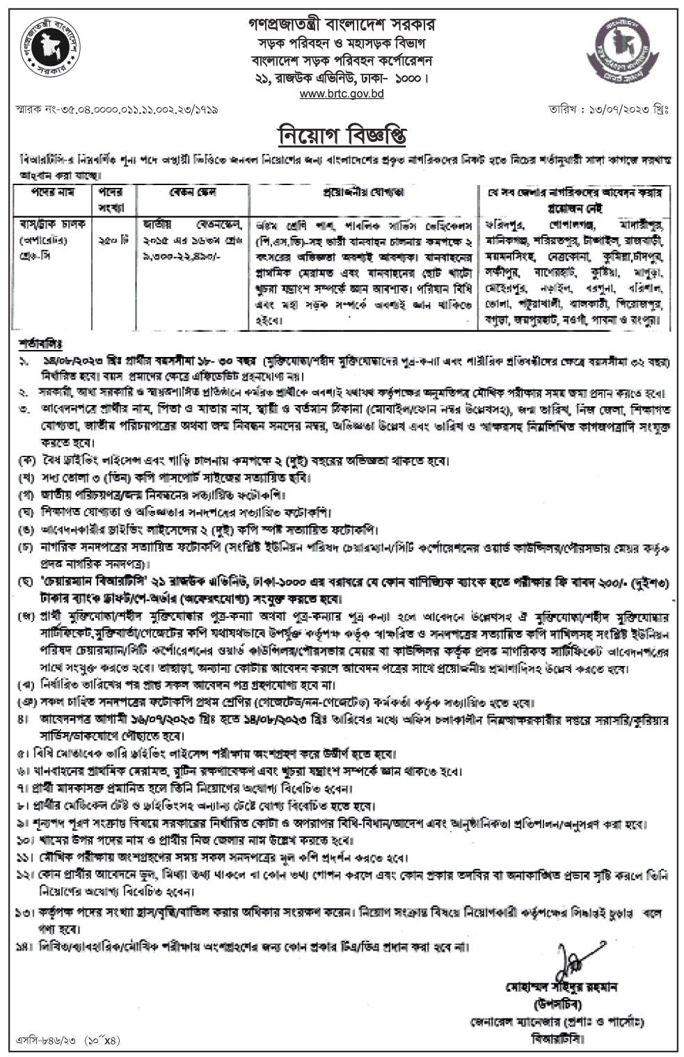 The Bangladesh Road Transport Corporation BRTC Office is hiring! They are inviting applications from students who are interested in their job circular, and this includes new posts as well! All relevant information about the appointment process can be found on our website bangladeshpost.net - so make sure you check it before applying to ensure your interest isn't missed out by other applicants.