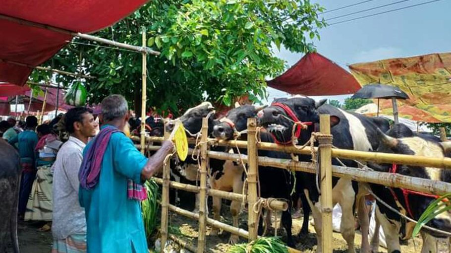 As Eid is approaching, more people are visiting the cattle markets to buy cattle. The sellers are hopeful that more buyers will gather at the sacrificial animal markets in the upazila at the last moment. If sacrificial animals are imported from India and Myanmar, all small and big farmers will face losses, said the farmers and traders said.