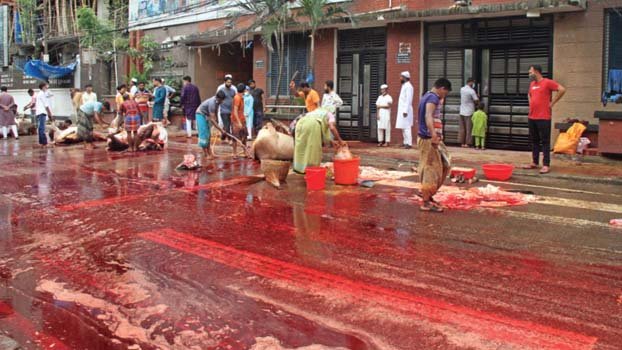 However, all the efforts went in vein as most of the people sacrificed their animals either on the streets in front of their houses or in the garage of the houses.