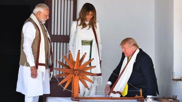 Mr Trump and First Lady Melania Trump tried their hand at the charka or spinning wheel, which is used to spin cloth. Gandhi popularised the act as a form of protest against foreign-made cloth during India's independence movement. "To my great friend Prime Minister Modi, thank you for this wonderful visit," Mr Trump wrote in the ashram visitor's book.