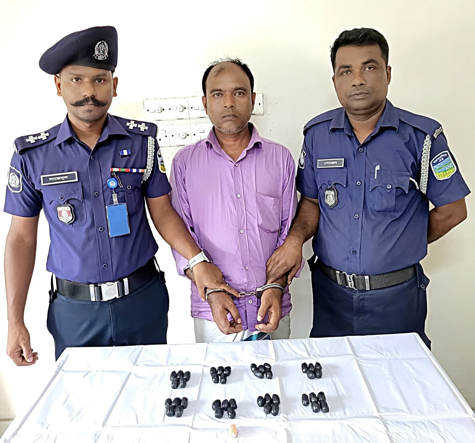 Dulal, son of the late Shamsul Sardar of Char Khabulia village in Mahmudpur Union, was apprehended on Saturday evening (13 September) from outside the lease office of the goat market in Melandha Bazar. Acting on a tip-off, police arrested him while he was preparing to sell the contraband tablets, which have an estimated street value of around Tk 615,000.