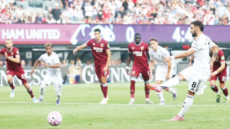 Bruno Fernandes scored twice as Manchester United kicked off their tour of the United States with a 2-1 win over West Ham in the Premier League Summer Series tournament in New Jersey on Saturday.
