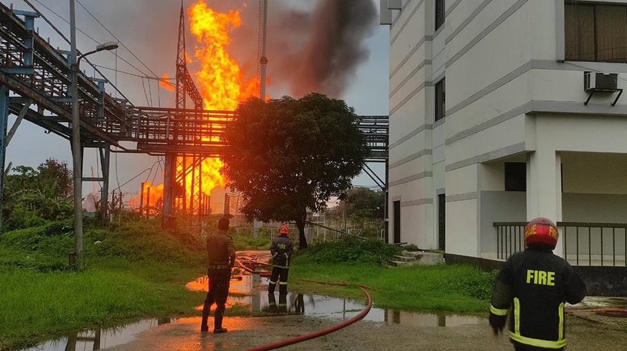 While piling on an empty plot of a building under construction inside Adamji EPZ in Siddhirganj, Narayanganj, a 20 e radius pipe of Titas gas burst and caused a terrible fire. After receiving the news of the fire, the personnel of 9 units of Narayanganj and Dhaka Fire Service were able to bring the fire under control after 6 and a half hours. The fire broke out at 10 am on Friday. Gas supply to Narayanganj city and various areas of Siddhirganj was cut off after the fire. The fire caused panic in EPZ area and Siddhirganj 210 MW thermal power plant.