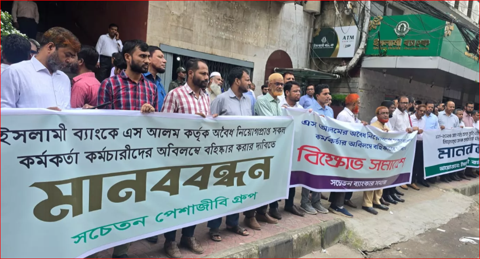 The demonstration also highlighted a recent move by Islami Bank to evaluate the qualifications of the allegedly illegally appointed staff.