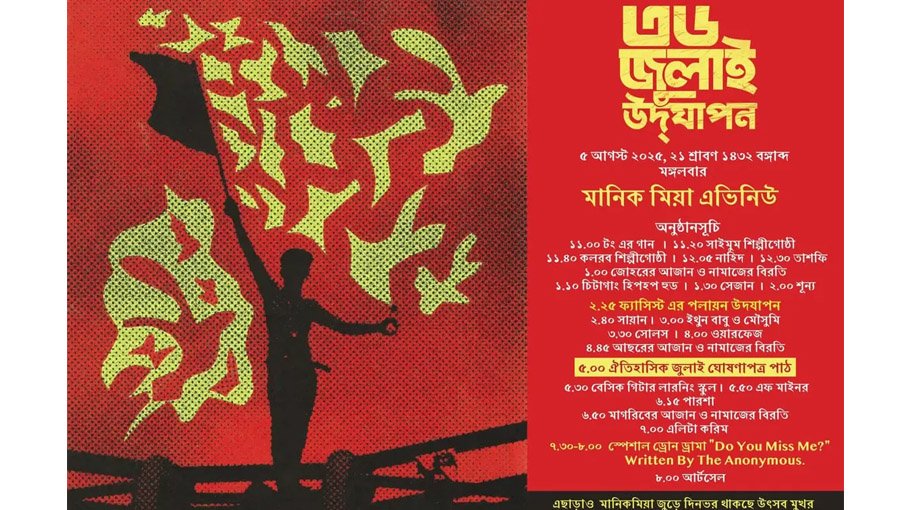 In a post on the verified Facebook page of Chief Adviser Muhammad Yunus on Sunday, the government outlined a comprehensive day-long celebration to mark the one-year anniversary of the historic July mass uprising.