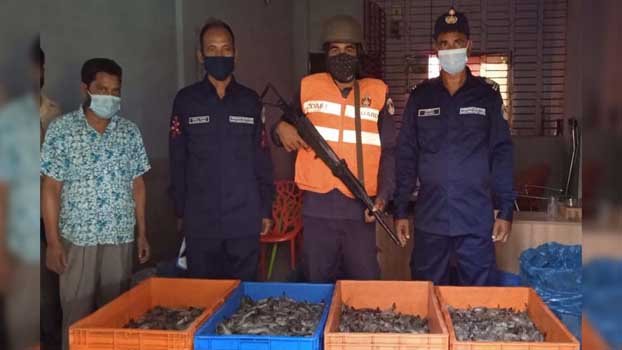 Members of Bangladesh Coast Guard on Monday afternoon arrest 6 shrimp traders with 300 kilograms of shrimp filled with toxic jelly. The operation took place at Bagmara area’s Modern Sea Food Company of Rupsha Thana under Khulna district.