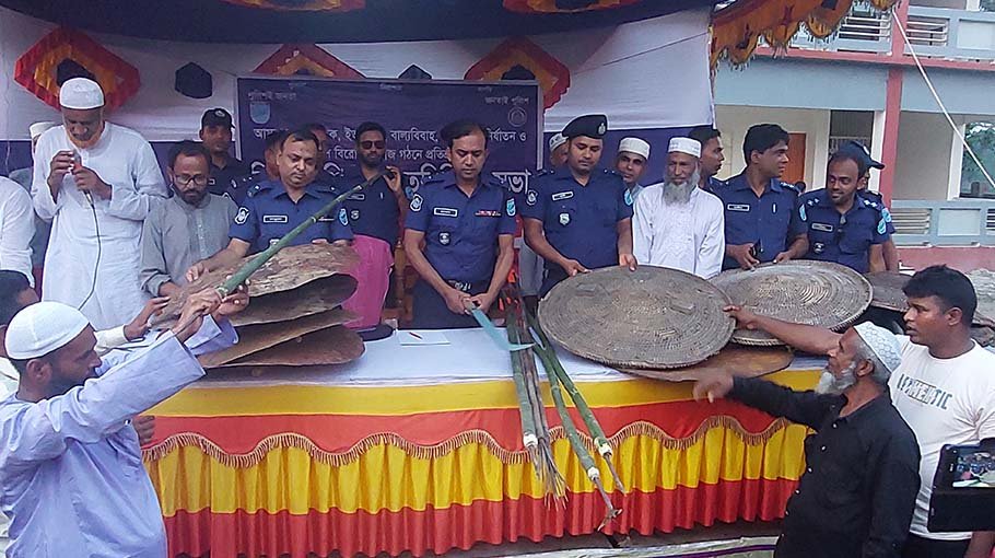 Hindrance of village development have been resolved by discussing the long-standing problems of the villagers under the guidance of Madaripur District Superintendent of Police Masud Alam. On Friday afternoon, thousands of people of the village submitted different types of indigenous weapons to Dasar Police Station Officer-in-Charge Hasanuzzaman in a beat policing meeting at Khatial High School ground of Khatial village of Dasar police station in Madaripur district. With this, beat policing solved a 35 year-long ongoing feud.