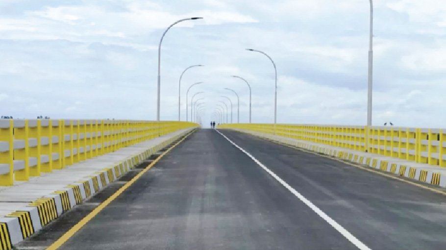 The 1,490-metre-long and 9.6-metre-wide PC girder bridge includes 31 spans and 3.5 km of river rule work with a total construction cost of Tk 925 crore.