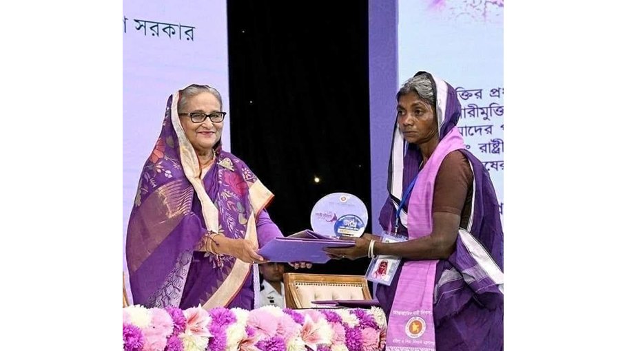Prime Minister Sheikh Hasina presented Komoli a cheque of Tk one lakh, crest, saree and certificate.
