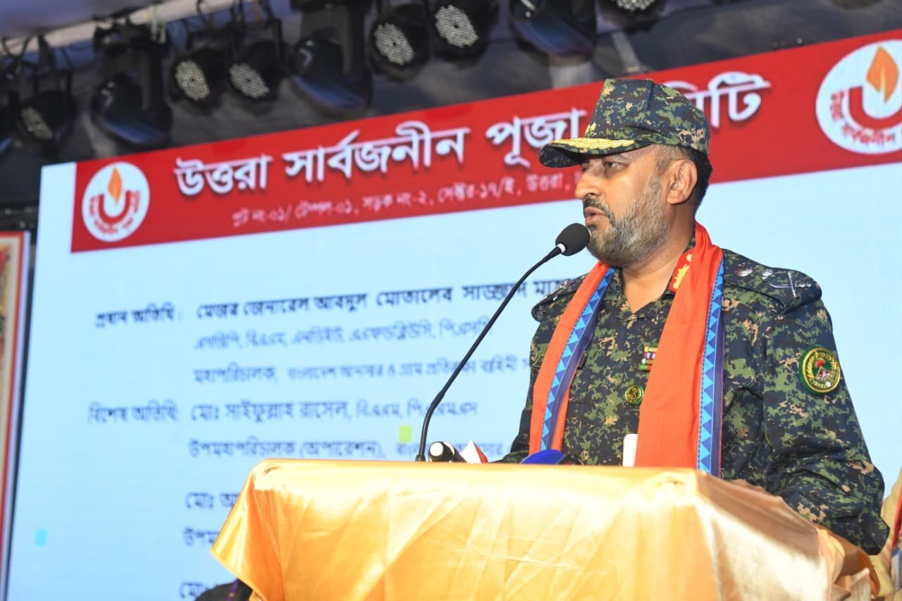 Major General Abdul Motaleb Sazzad Mahmud, Director General of Bangladesh Ansar and Village Defence Party (Ansar-VDP), inspected the Uttara Sarbojonin Temple in the capital on Monday to review security arrangements for the ongoing Durga Puja.
