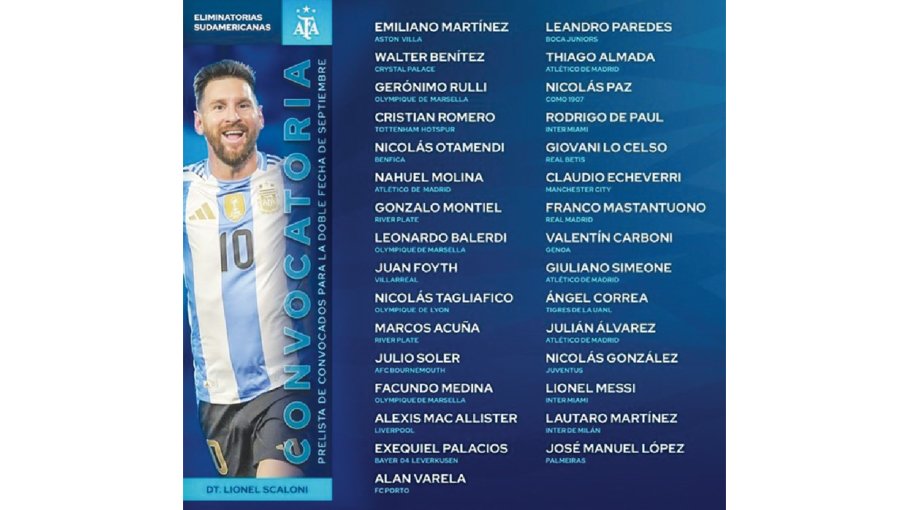 Argentina's national team unveiled a revamped 31-man squad on Monday, led by Lionel Messi, for the South American qualifiers against Venezuela and Ecuador for the 2026 World Cup.
