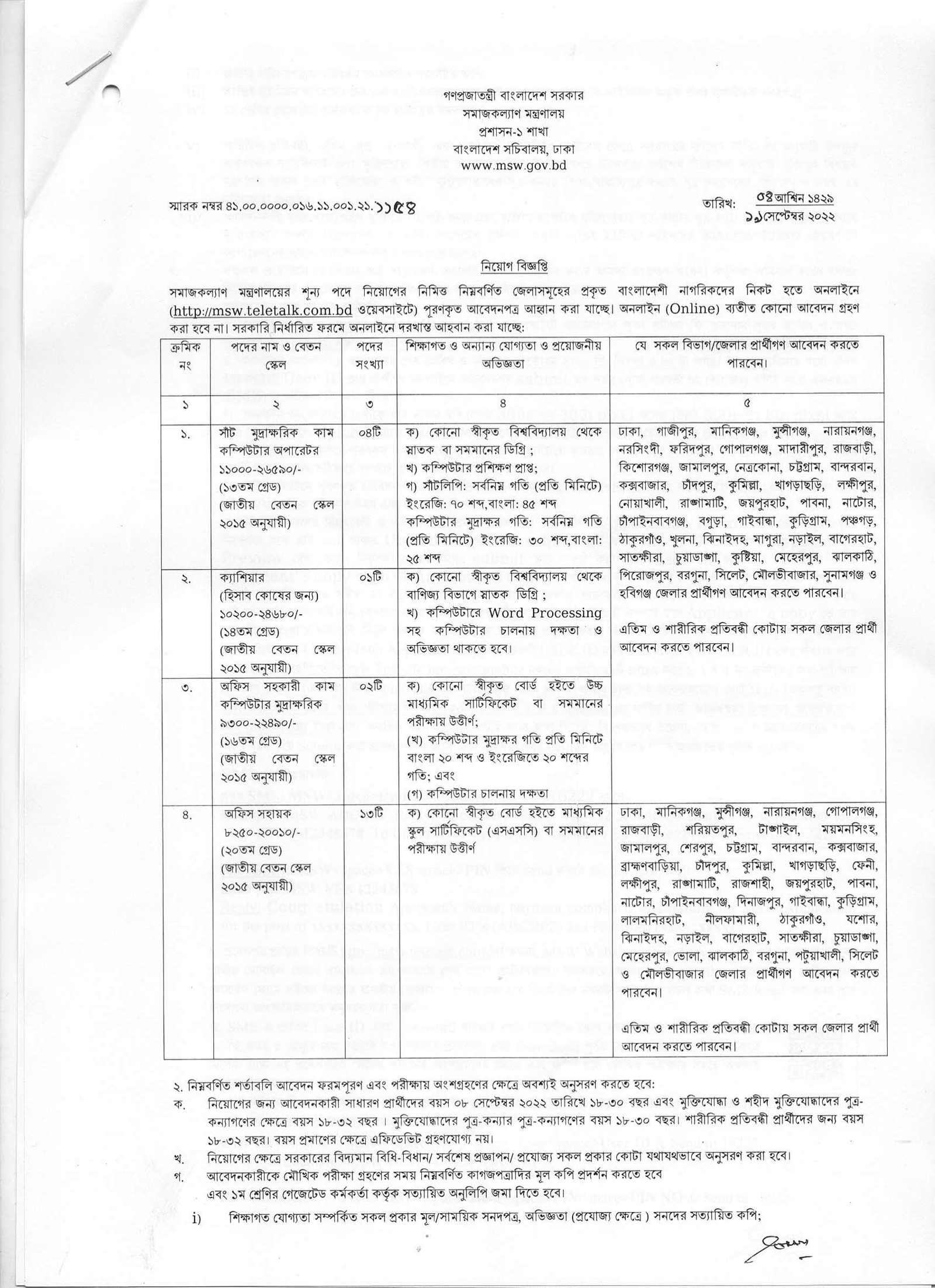 Ministry of Social Welfare MSW is hiring! They are inviting applications from students who are interested in their job circular, and this includes new posts as well! All relevant information about the appointment process can be found on our website bangladeshpost.net - so make sure you check it before applying to ensure your interest isn't missed out by other applicants.