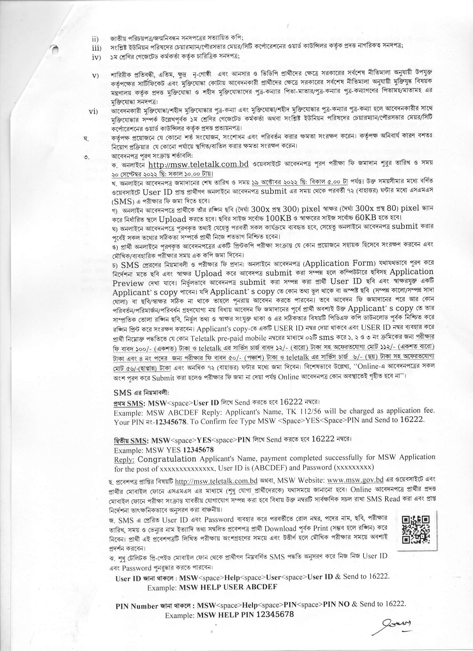 Reply: Congratulations Applicant’s Name, payment completed successfully for MSW Application for xxxxxxxxxxxxxx User ID is (ABCDEF) and Password (xxxxxxxx)