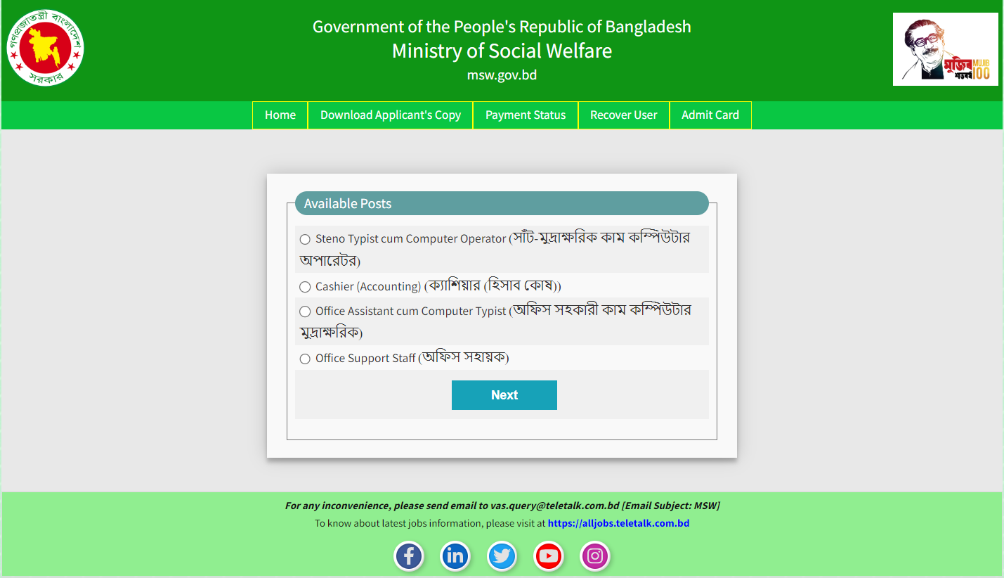 Official website: www.msw.gov.bd