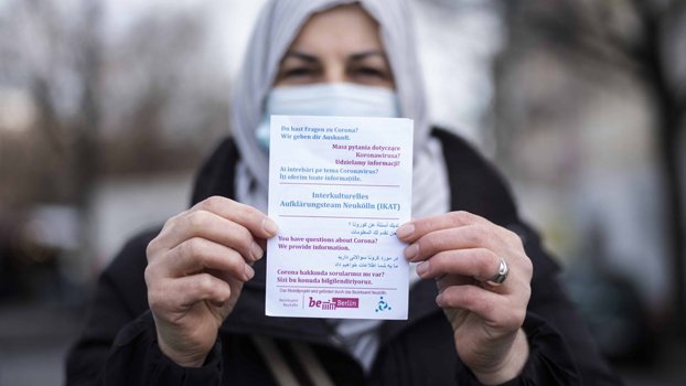Three times a week, Aliye Tuerkyi lmaz hits the markets and busy shopping streets of Neukoelln to hand out informational flyers on the coronavirus pandemic to residents of the German capital’s crowded immigrant neighborhood that’s studded with minarets, kebab stores and hookah lounges, reports AP from Berlin.