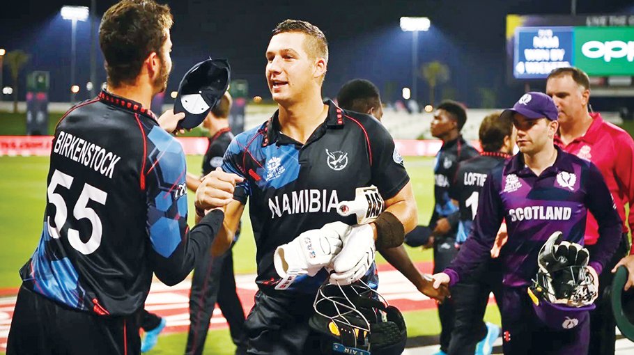 A stunning opening burst from seamer Ruben Trumpelmann and an unbeaten 32 by JJ Smit down the order helped Namibia secure a nervy four-wicket win over Scotland in their Group I encounter in Abu Dhabi on Wednesday.