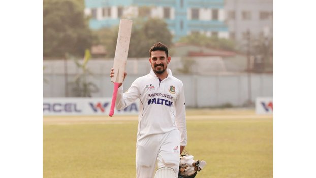 Resuming the day on 93, he brought up his century and gave Rangpur a nice platform. Riding on his 115 off 252, that included 11 fours and four sixes, Rangpur was shot out for 230 in their innings, in reply of Dhaka’s 365.