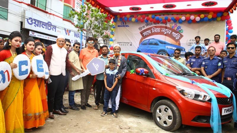 Marcel’s Head of Sales Md. Shakhawat Hossen, Brand Ambassador Amin Khan and Fulpur Upazila Chairman Ataul Karim Rasen handed over the new car to Chan Miah at a programme organised by Khan Motors and Electronics, a local distributor of Marcel in Fulpur, Mymensingh on Monday, said a press release.