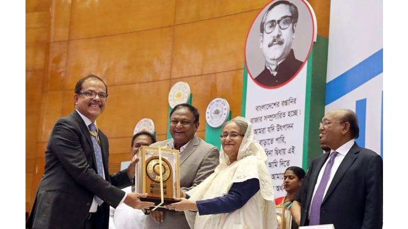 EPB Vice-Chairman Fatima Yasmin delivered the welcome address. At the function, a documentary on ‘Export of Bangladesh’ was screened. Ministers, PM’s advisers, parliament members, business leaders, high civil and military officials were present. The Prime Minister handed over 66 trophies – 29 gold, 21 silver and 16 bronze – in 28 categories to 66 companies for their outstanding performance in the export sector. Zaber and Zobaer Fabrics was awarded a gold medal as the highest exporting company in fiscal 2016-17.