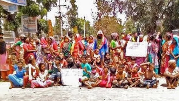 As nationwide humanitarian assistance distribution by the government and other voluntary organizations are going on in full-swing, needy people staged a demonstration on Tuesday in Dinajpur town to press home their demand for relief in this perilous time triggered by coronavirus epidemic.