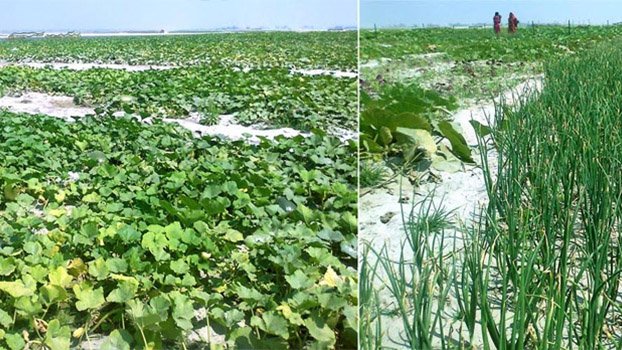 They are expanding cultivation of pumpkin with other crops like onion, garlic, vegetables, green chili, squash, potato, brinjal, sweet potato and other Rabi crops on the sandy char lands and dried-up riverbeds this season.