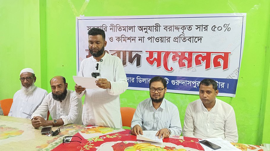 The retail fertiliser dealers in Gurudaspur upazila of Natore held a press conference on Monday as they did not get the allocated 50 percent fertiliser and commission according to the government regulations.