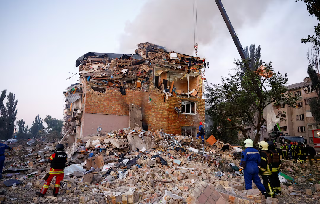 Among the dead were four children between 2 and 17, said Tymur Tkachenko, the head of Kyiv’s city administration. The numbers are expected to rise. Rescue teams were on site to pull people trapped underneath the rubble.