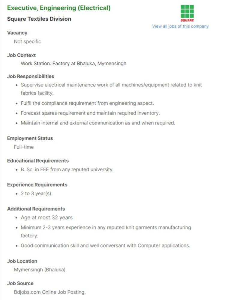 Square Group is hiring! They are inviting applications from students who are interested in their job circular, and this includes new posts as well! All relevant information about the appointment process can be found on our website bangladeshpost.net - so make sure you check it before applying to ensure your interest isn't missed out by other applicants.