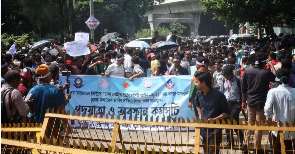 Students of seven government colleges are staging a sit-in in front of Shikkha Bhaban in the capital, demanding the promulgation of the ‘Dhaka Central University Ordinance’ within the next three working days.