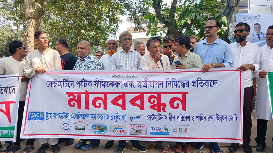 Mufizur Rahman, chief advisor of TOAC, said expressed hope that the current administration, keeping in mind the importance of tourism, would reconsider the issue. Hossainul Islam Bahadur, secretary general of the Sea Cruise Operators Owners Association of Bangladesh, said that the ban on overnight stays and the limitation on tourist numbers were decisions made by the previous government. He urged the current government, which he called a “government of the people,” to take a fresh look at the issue and revoke the prior administration's decision. Following the protest, a memorandum was submitted to the District Commissioner. Later, a press conference was held at a hotel in Cox’s Bazar, where the TOAC and the St. Martin’s Island Environmental and Tourism Development Coalition presented 18 demands, including the reversal of all anti-tourism decisions made by the previous government.