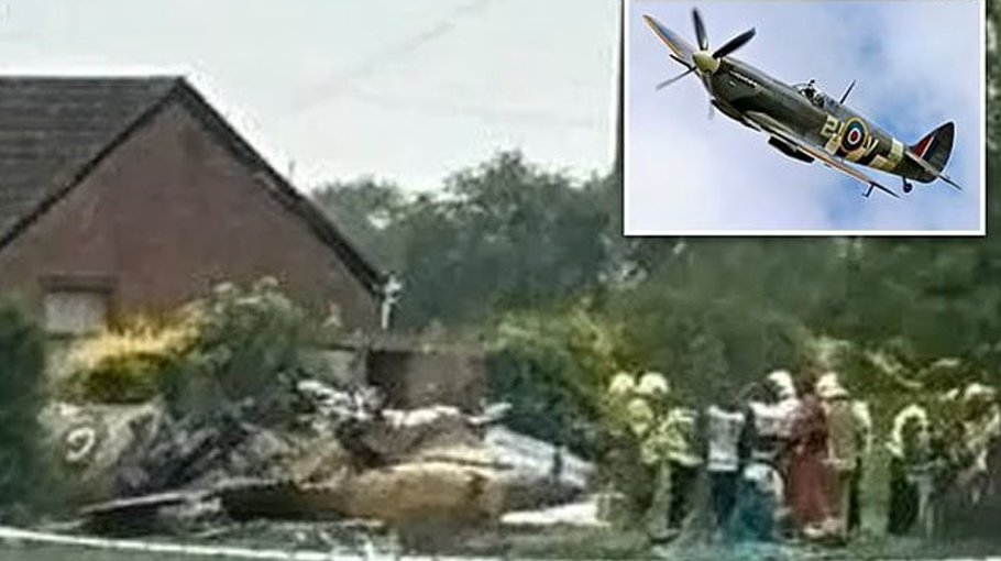 The World War II fighter plane was flying near the RAF Coningsby base in Lincolnshire when it came down in a field shortly after 1:00 pm (1200 GMT).