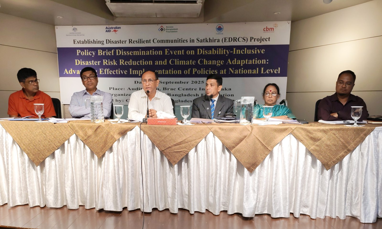 An event titled “Policy Brief Dissemination on Disability-Inclusive Disaster Risk Reduction (DRR) and Climate Change Adaptation (CCA): Advancing Effective Implementation of Policies” was held on Tuesday at Mohakhali in the capital.