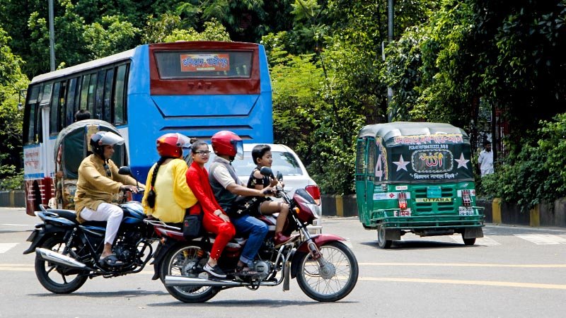 Of late, awareness among the city residents has depleted to a level worth concerning. Be it road crossing or vehicle riding, people have developed an insouciant attitude toward traffic laws, risking their lives. In the photo, snapped on Friday from in front of the High Court gate, a rider is seen running his motorbike turning to other direction, keeping himself away from realising imminent danger. Illegally too, he has three fellow riders who remain unguarded as they wear no helmets. Photo: Zakir Hossain