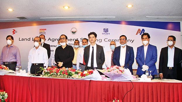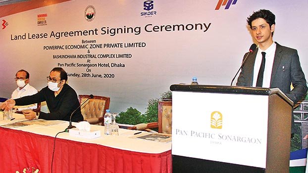 Bangladesh Economic Zones Authority Executive Chairman Paban Chowdhury, Banshundhara Group Manganing Director Sayem Sobhan Anvir and PowerPac Economic Zone (Pvt) Ltd Group Director John Haque Sikder are seen in the picture.