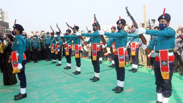 State honour paid to valiant freedom fighter Zainul Haque Sikder by a smart contingent of police on the Sikder Real Estate premises in the capital Saturday.