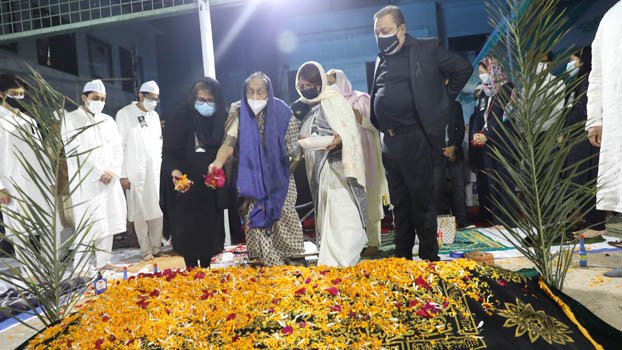 Family members of late freedom fighter Zainul Haque Sikder praying for the forgiveness of his departed soul.