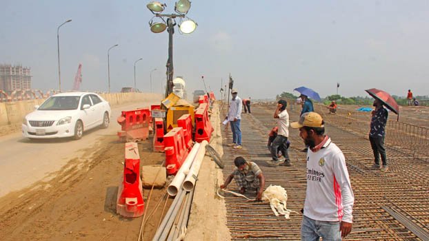 The construction work of the Balu River bridge in purbachol is progressing fast.The photo was taken on Friday. Photo: Nazmul Hasan