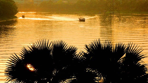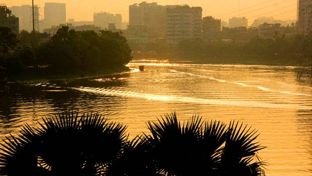 The Hatirjheel Lake in the capital wears a mesmerizing look for the reflection of sun set before the evening.Photo: Nazmul Hasan