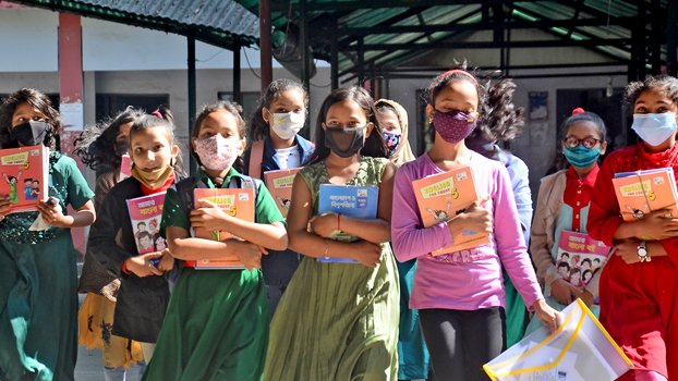 Students were excited to get new books on the first day of the New Year.Photo: Masumul Islam